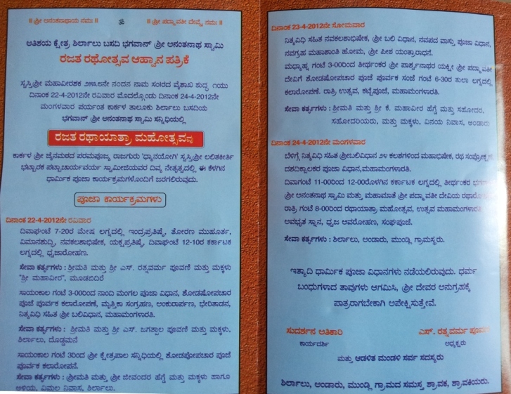 Rajata Rathotsava to be held between 22nd to 24th April 2012 - Invitation